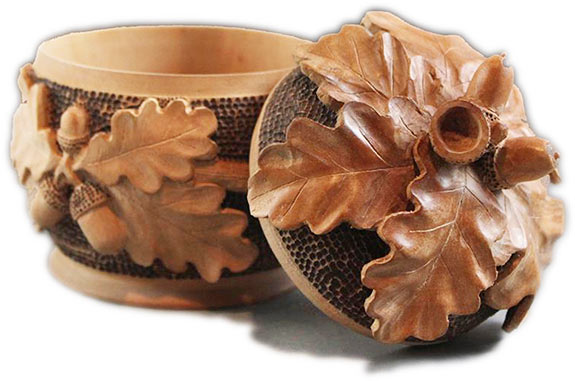 Während seiner Arbeit als Ingenieur in einem renommierten Unternehmen hat sich Nairi Safaryan seiner ursprünglichen Liebe zur Holzschnitzkunst zugewandt. Dabei hat er sein technisches Wissen und seine künstlerische Begabung für eine zunehmend filigranere Bearbeitung des Holzes entdeckt. Seine aus mehreren Schichten angelegten Schmuckkästchen, Trinkbecher und Figuren aus Birnbaumholz wirken dadurch ungewöhnlich sinnlich und zart.